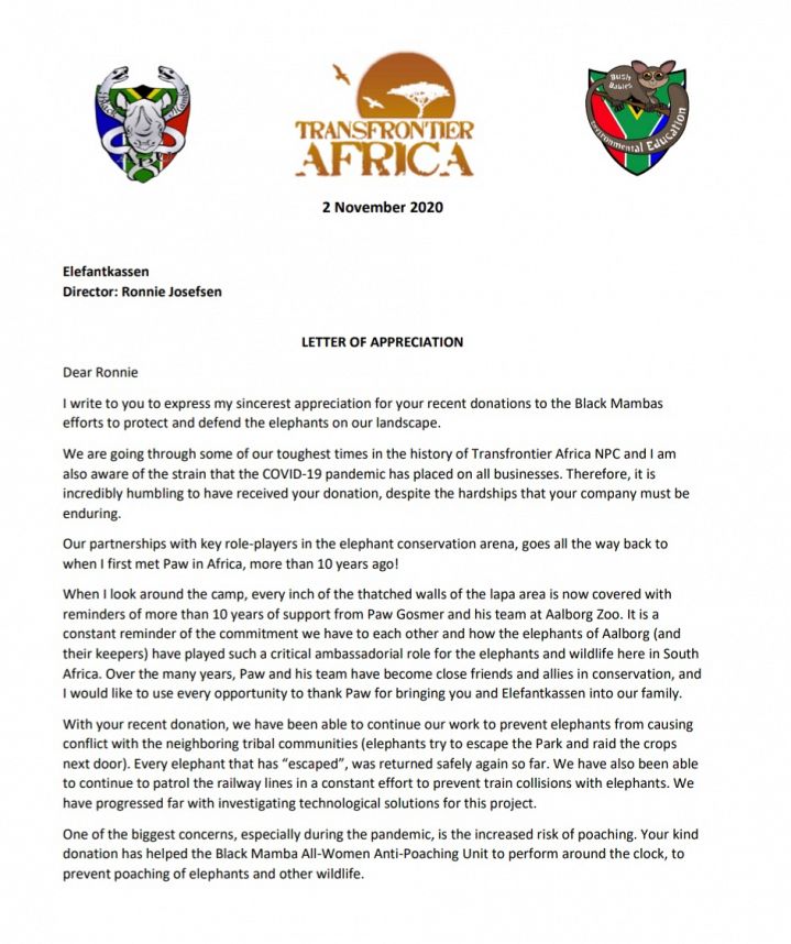 Ved at støtte gennem Aalborg Zoo er vi sikre på at pengene går ubeskåret til Transfrontier Africas arbejde og derved